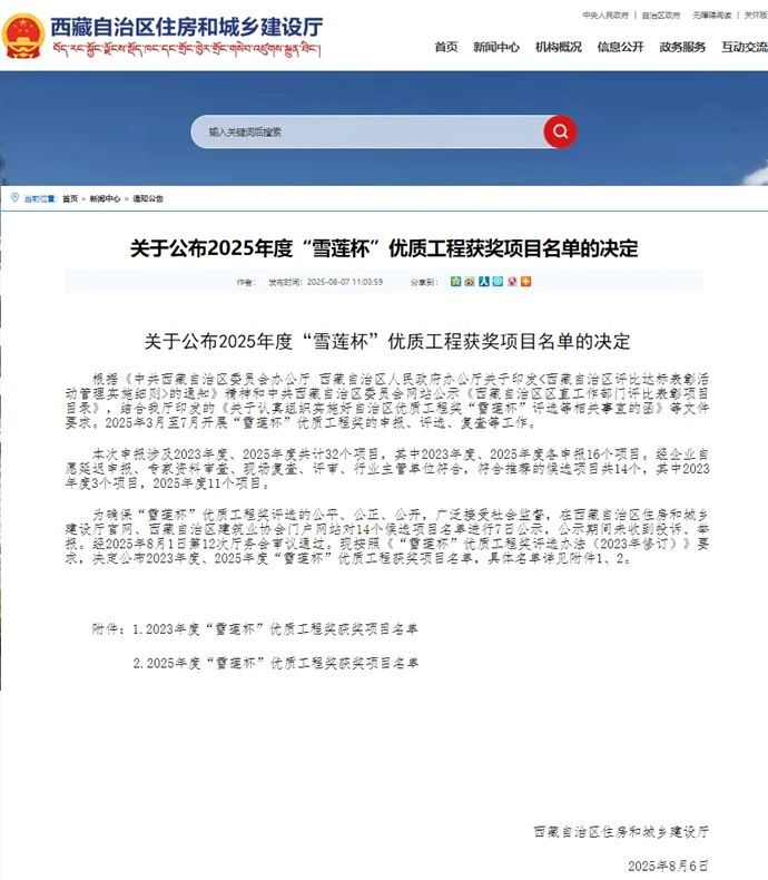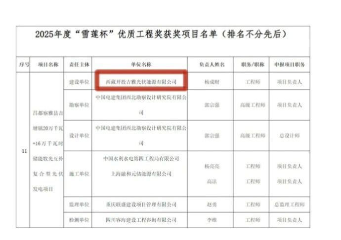 8月7日,西藏自治區(qū)住房和城鄉(xiāng)建設(shè)廳公布2025年度“雪蓮杯”優(yōu)質(zhì)工程獲獎項(xiàng)目名單,由西藏開投吉雅光伏公司投資建設(shè)的昌都察雅縣吉塘鎮(zhèn)20萬千瓦+16萬千瓦時儲能牧光互補(bǔ)復(fù)合型光伏發(fā)電項(xiàng)目榮獲該獎項(xiàng)。