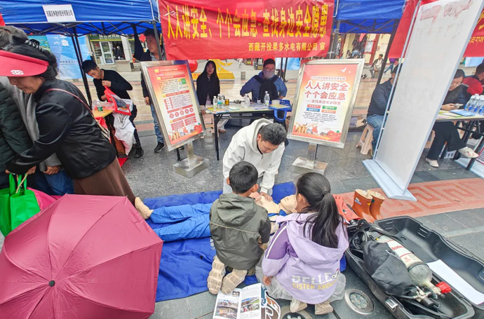 6月16日,西藏開(kāi)投果多水電公司積極響應(yīng)昌都市安全生產(chǎn)委員會(huì)辦公室及昌都市應(yīng)急管理局邀請(qǐng),參加昌都市“人人講安全、個(gè)個(gè)會(huì)應(yīng)急——查找身邊安全隱患”為主題的安全宣傳咨詢?nèi)栈顒?dòng)?;顒?dòng)現(xiàn)場(chǎng),果多水電公司向市民發(fā)放了安全用電手冊(cè),積極普及安全用電知識(shí),現(xiàn)場(chǎng)講解了各電壓等級(jí)驗(yàn)電棒、三相短路接地線、高壓拉閘桿及正壓式空氣呼吸器、五點(diǎn)式安全帶等多種安全設(shè)備相關(guān)知識(shí),并開(kāi)展了心肺復(fù)蘇模擬器實(shí)操演示,吸引了眾多市民駐足觀摩,部分市民還積極參與了心肺復(fù)蘇模擬實(shí)操。