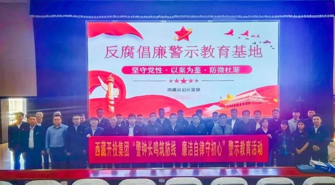 為扎實開展深入貫徹中央八項規(guī)定精神學習教育,堅定不移推進全面從嚴治黨向縱深發(fā)展,筑牢黨員干部職工拒腐防變思想堤壩,6月26日,西藏開投集團組織黨員干部職工赴西藏自治區(qū)監(jiān)獄管理局廉政警示教育基地開展“警鐘長鳴筑防線,廉潔自律守初心”警示教育活動。集團黨委委員、副總經(jīng)理溫勇、尼瑪與集團總部、所屬單位黨員干部職工共70余人參加活動。