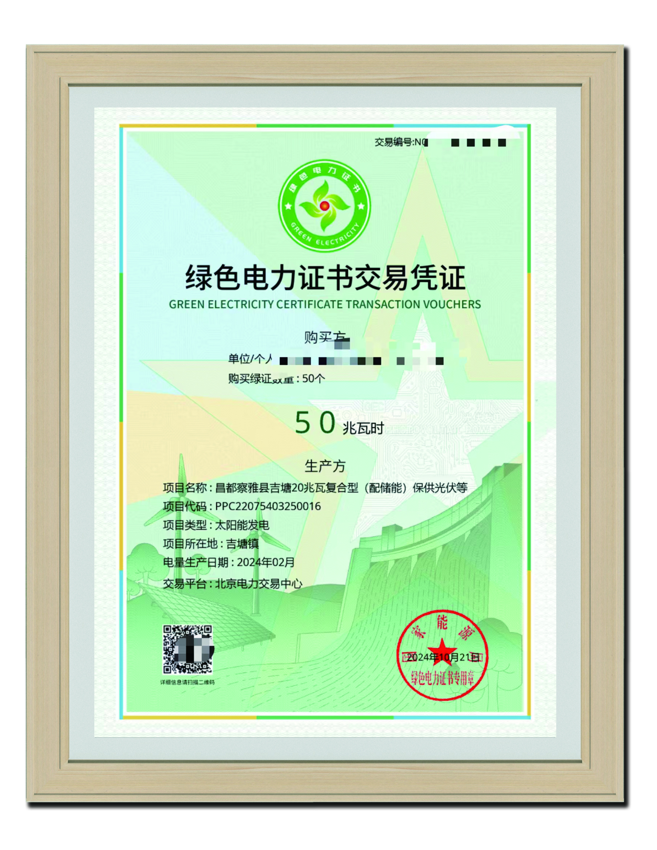 2024年10月21日綠色電力證書(shū)交易憑證50兆瓦時(shí)