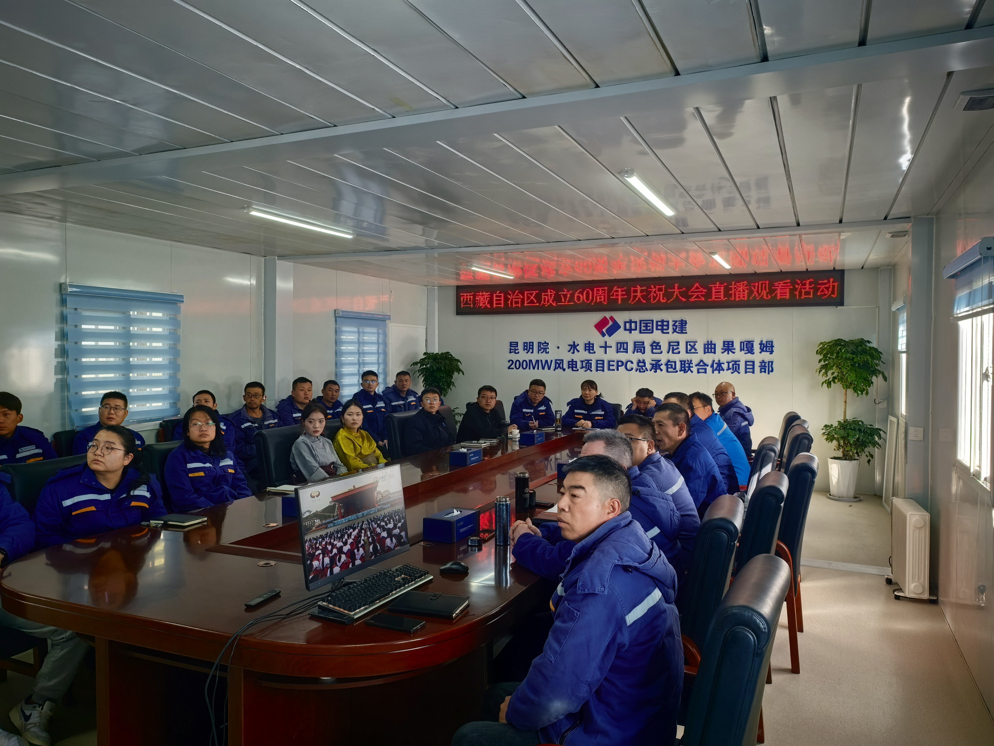 西藏開(kāi)投色尼區(qū)曲果嘎姆200MW風(fēng)電項(xiàng)目組織觀看西藏自治區(qū)成立60周年慶?;顒?dòng)開(kāi)幕盛況